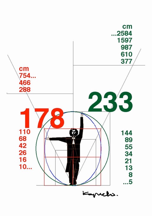 Damit sind die Eckdaten der roten und grünen Maßketten gefunden und bleiben, wie alle daraus Folgenden exakt (....ein paar Jahre hat es gedauert bis ich Fibonacci entdeckte und verstand), so daß sich damit in der Praxis gut arbeiten läßt.